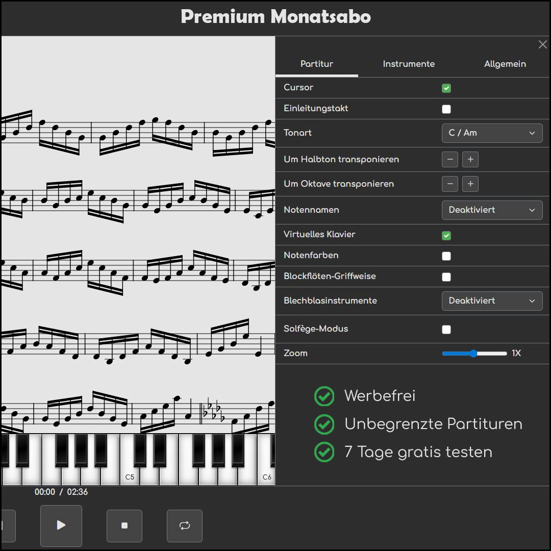| Noten ansehen | 5–10 pro Tag | Unbegrenzt |