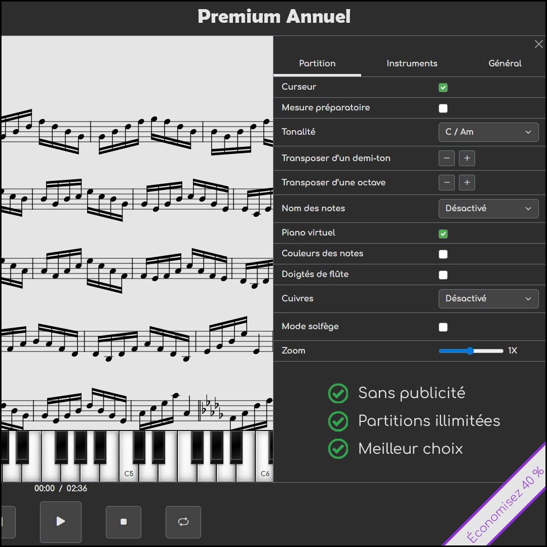 | Consulter les partitions | 5 à 10 par jour | Illimité |