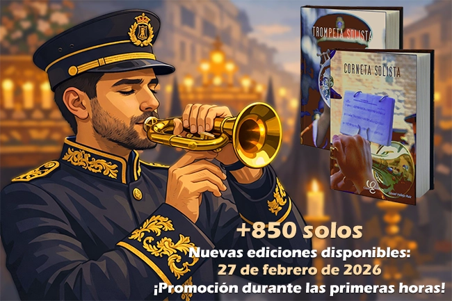 CORNETA SOLISTA son 3 libros en PDF y Amazon Kindle que reúnen la mayor colección de partituras de solos y dúos de marchas de Semana Santa que existe para corneta.
